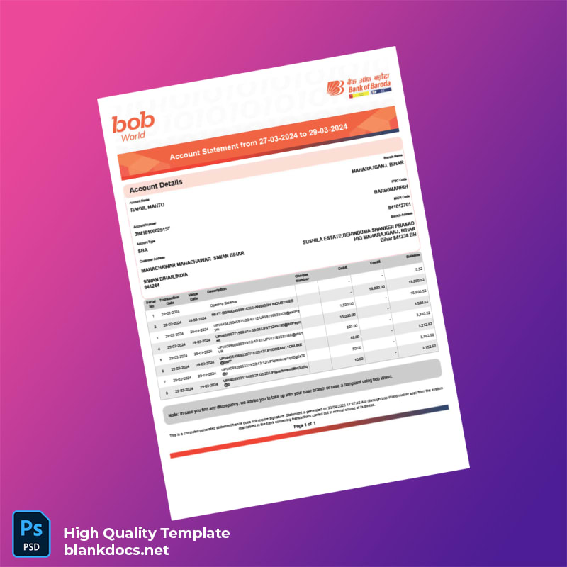 The India SBA Account Statement Template in Word and PDF formats is an essential tool for professionals who need a reliable and customizable document to fulfill their banking or financial requirements. Designed for immediate use, this template allows users to create accurate bank statements effortlessly.
