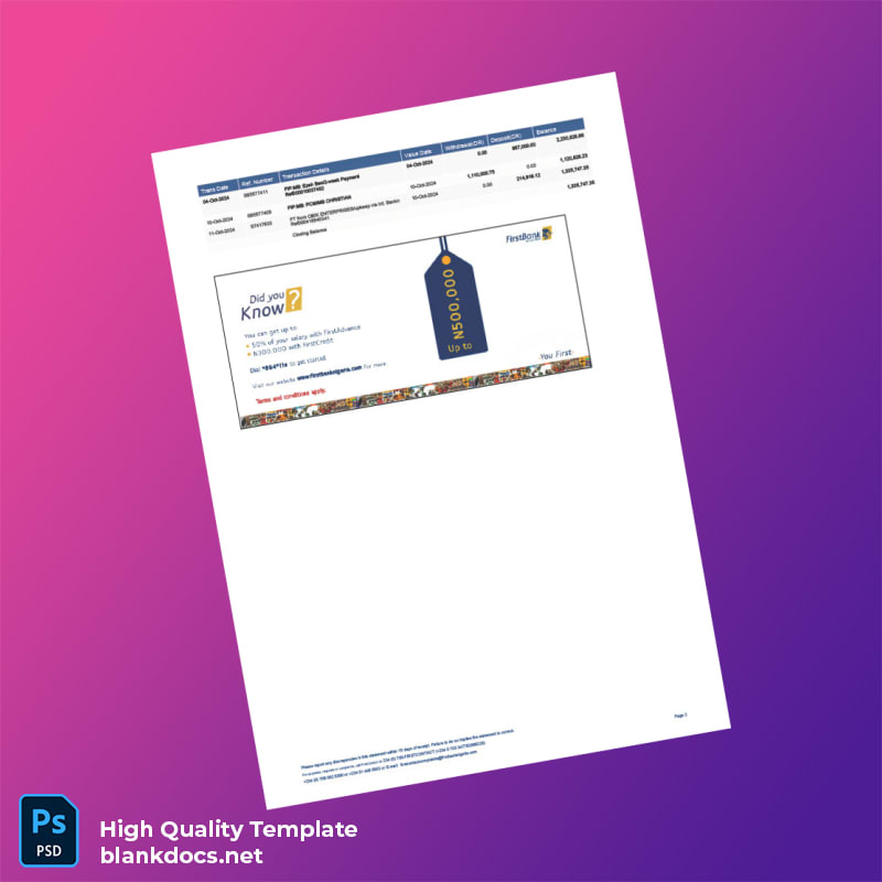 Our Nigeria FirstBank Statement Template includes features tailored for your convenience: