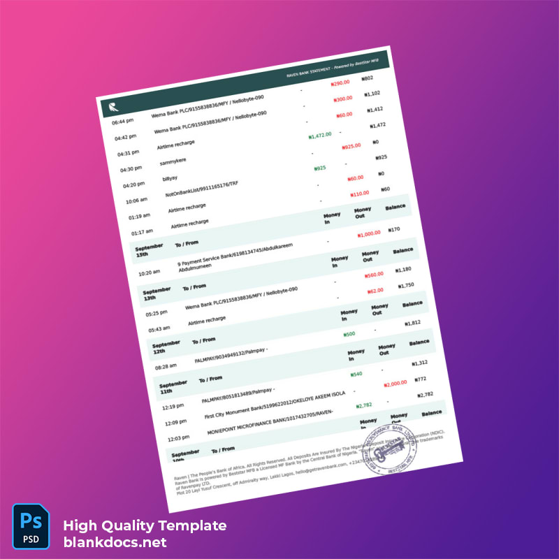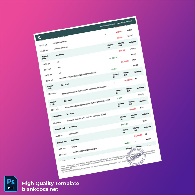 Revamp Your Financial Documentation with the Nigeria Raven Bank Statement Template