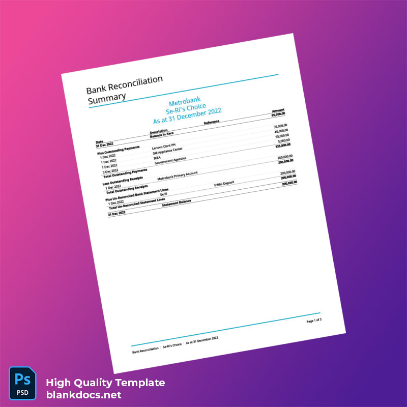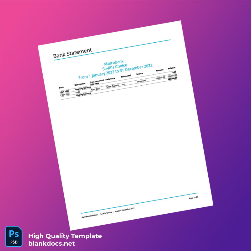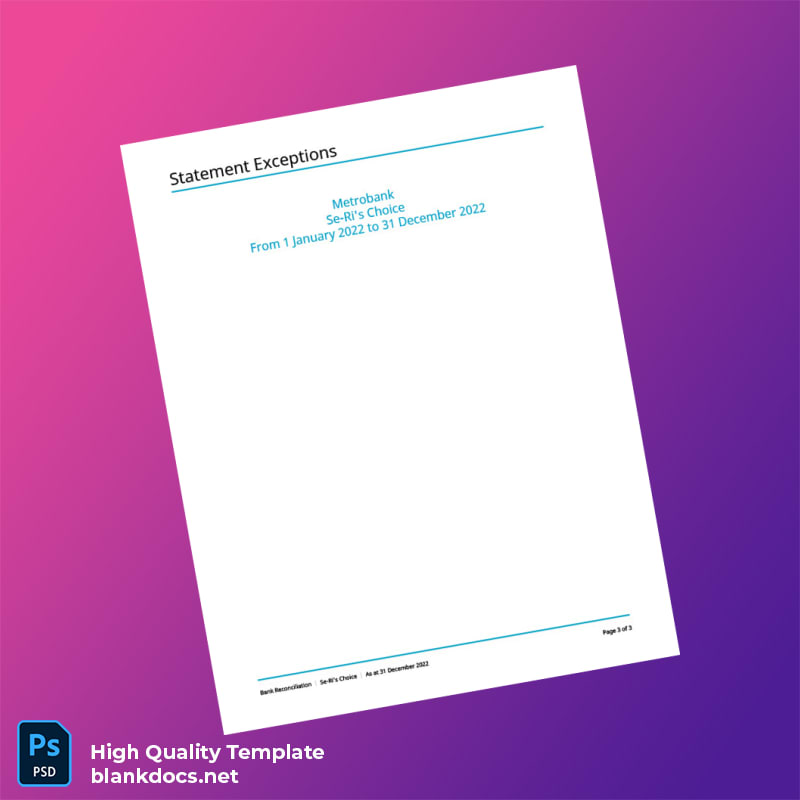 Are you a finance professional struggling to organize your bank statements? Look no further! Our Philippines Metrobank Bank Reconciliation Template in both Word and PDF formats is designed for individuals who need a reliable and editable bank statement template to streamline their financial processes. This editable bank statement template is perfect for those looking to maintain impeccable financial records.