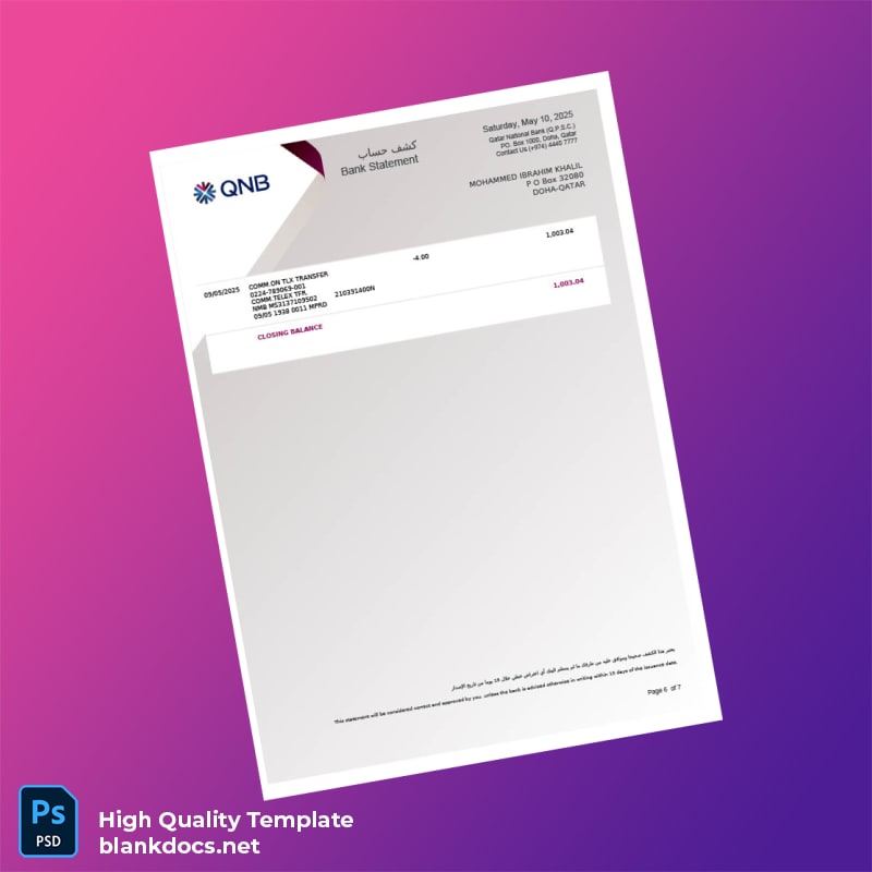 In today’s fast-paced world, the need for an immediate, reliable bank statement is paramount. Whether you’ve lost an original document, had it stolen, or simply need a replacement urgently for personal or professional purposes, the Qatar National Bank Account Statement Template offers a tailored solution. Available in both Word and PDF formats, this editable template is a must-have for those in need of a precise, professional bank statement.