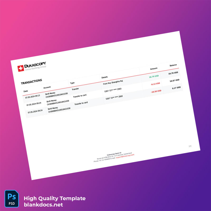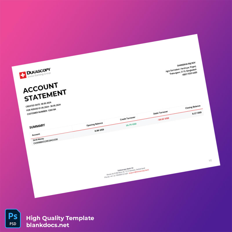 Switzerland Dukascopy Bank Statement Template – Your Solution for Instant Documentation