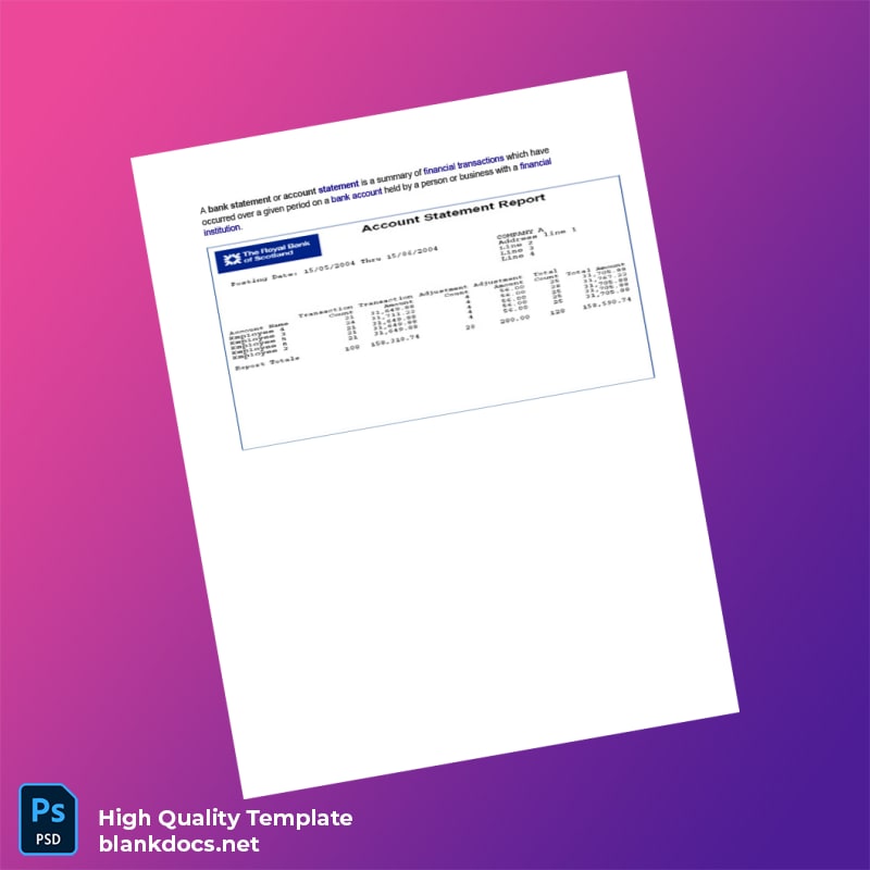 Our UK Royal Bank of Scotland Account Statement Template offers: