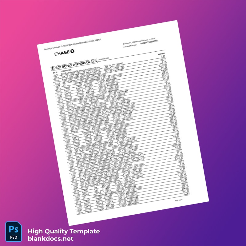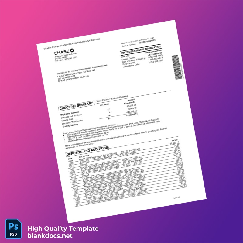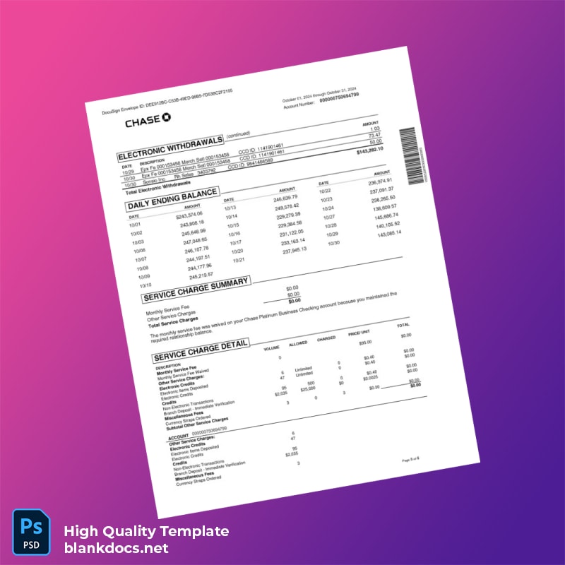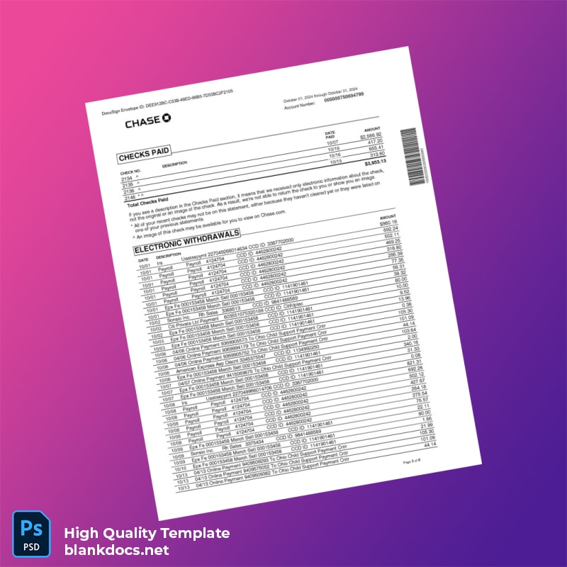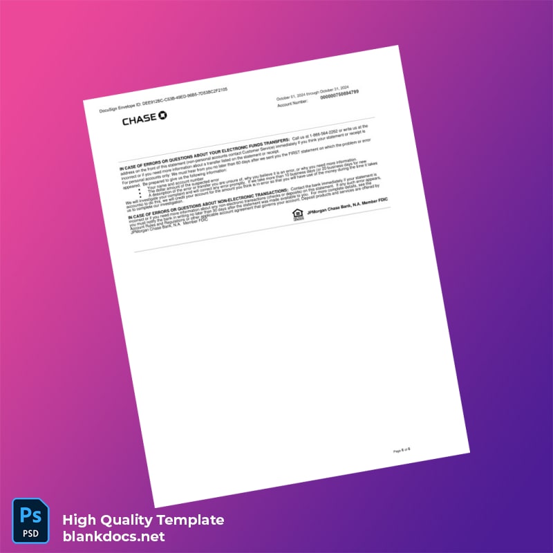 USA Chase Business Bank Statement Template in Word and PDF formats 6 page