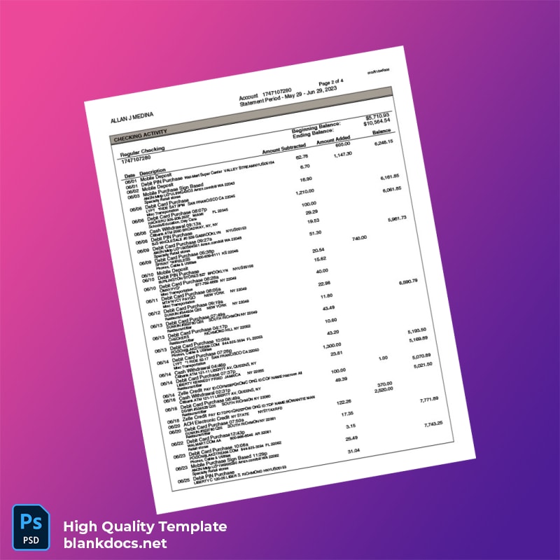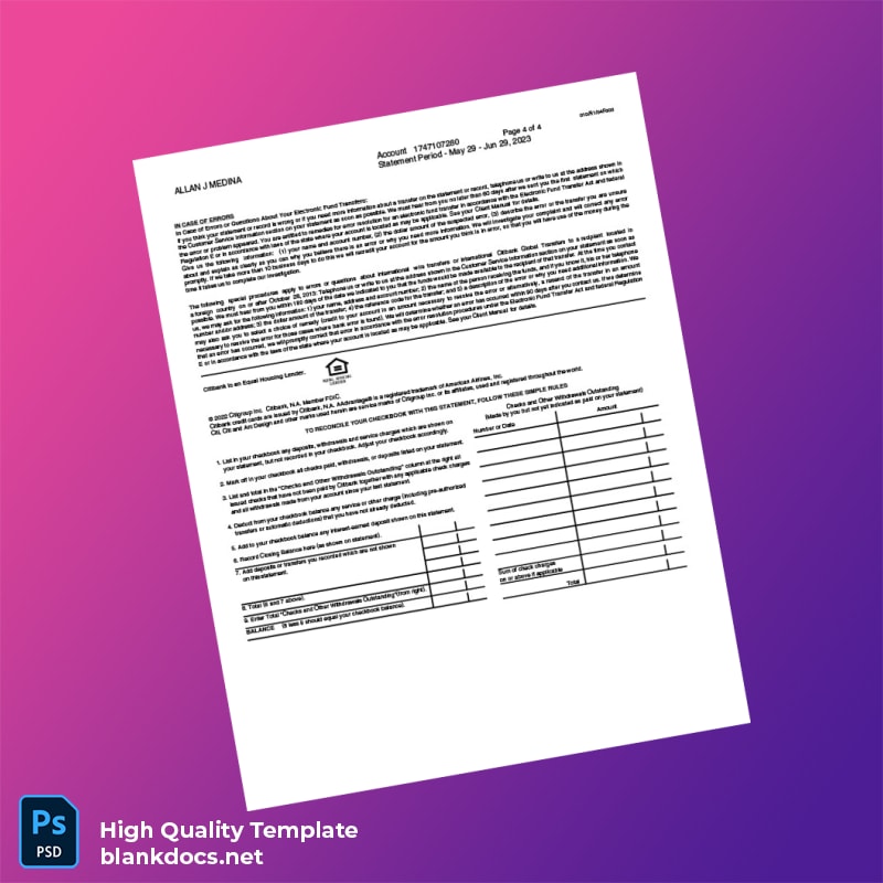Don’t let disorganization or lost documents stand in the way of your financial success. Download your USA Citibank Bank Statement Template today and streamline your financial documentation process. You can explore more templates and related products to meet all your documentation needs at Bank Statement Templates.
