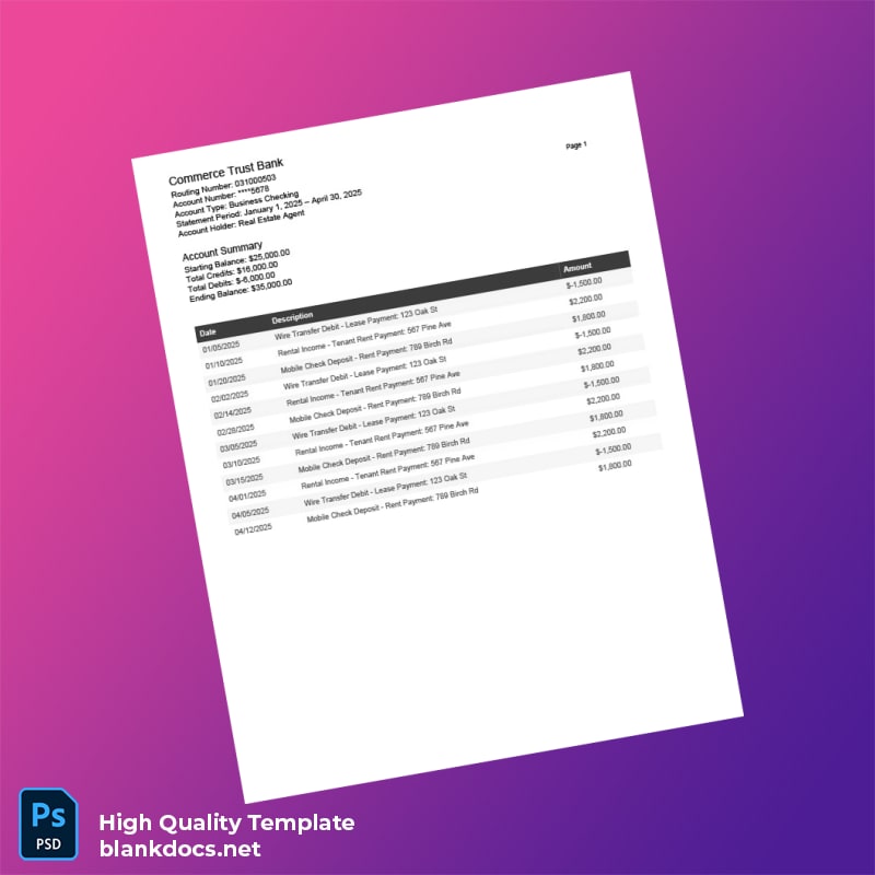 USA Commerce Trust Bank Statement Template – Editable and Accessible