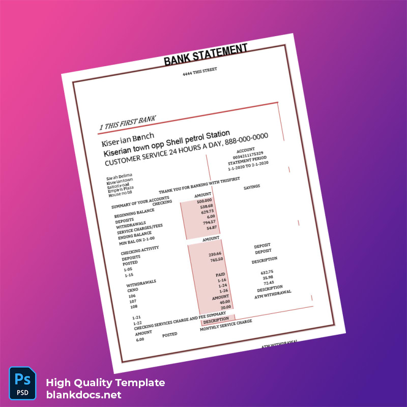 USA First Bank Bank Statement Template – Editable for Your Needs
