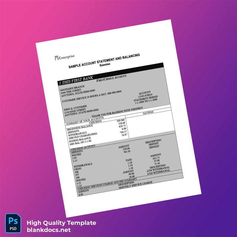 The USA First Bank Sample Account Statement Template is your ultimate solution for creating professional, editable bank statements. Available in both Word and PDF formats, this template is designed to cater to your urgent needs for accurate financial documentation.